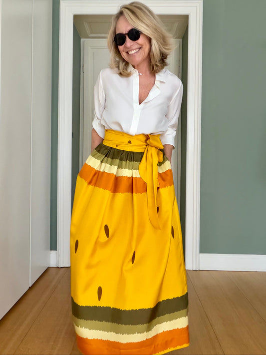 Le gonne ruffiane utilizzano solo tessuti fine serie, stock di magazzino o stoffe vintage. La nostra sfida è sfruttare al meglio tessuti e materiali già esistenti, senza avviare nuovi processi produttivi.