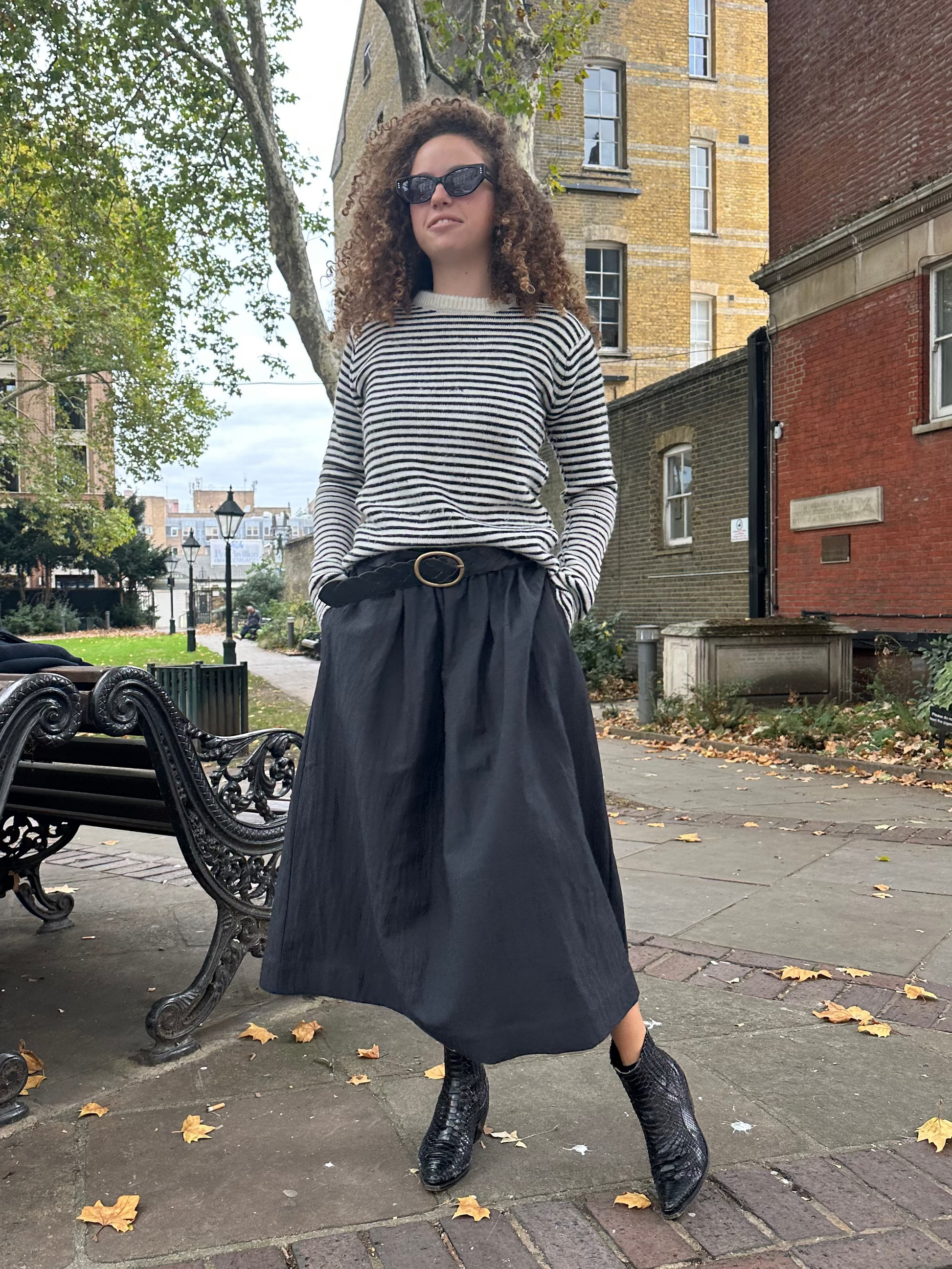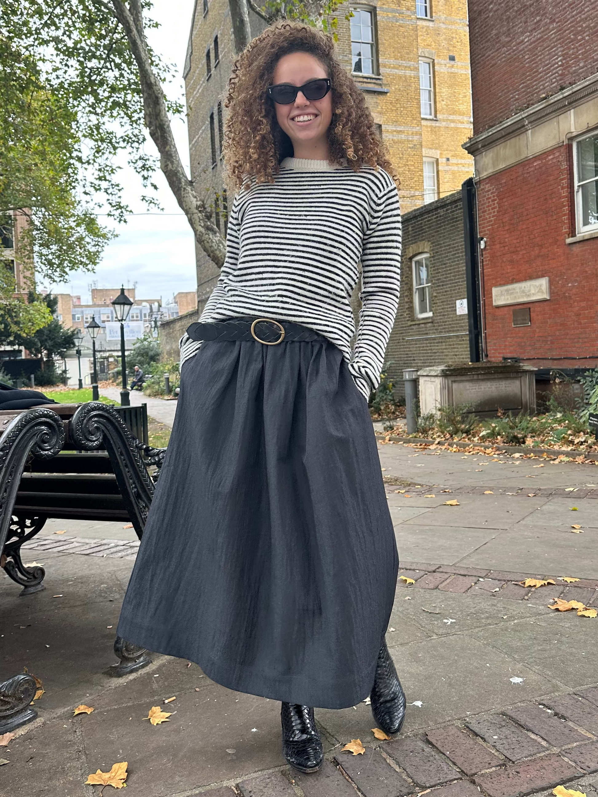 Tutte le nostre gonne sono realizzate su misura e non sono taglie uniche. Per ordinare la vostra taglia o scegliere un altro tessuto cliccate qui.